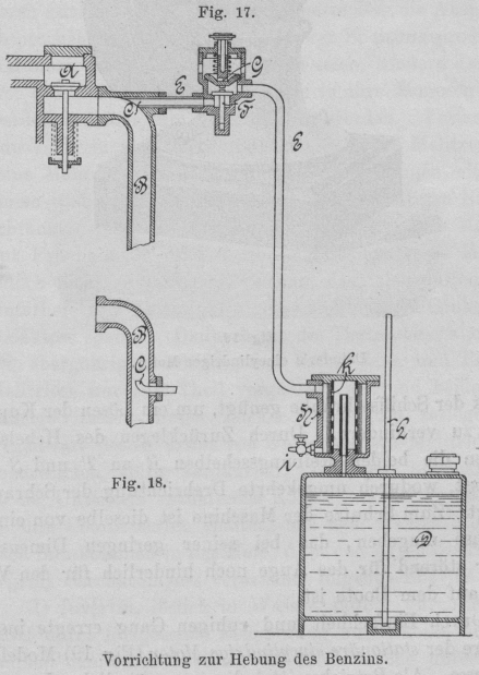 Die Hebung des Benzins nach dem Ansaugeventil der Maschine wird durch einen