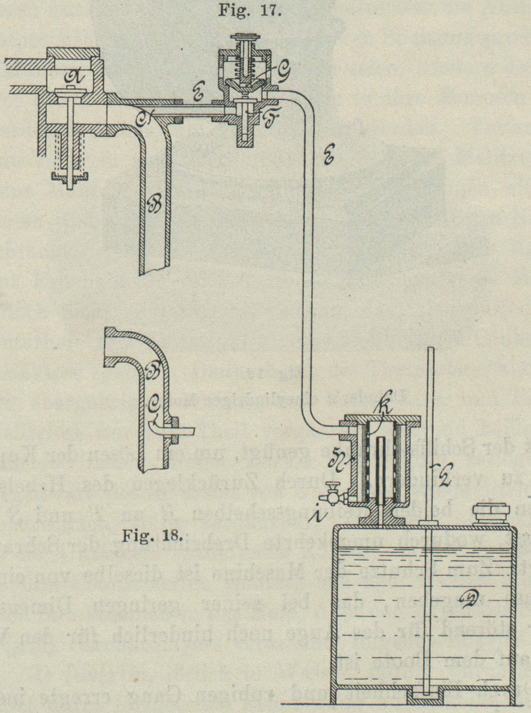 auch als Abscheider für Wasser und Schmutz dient. Durch Hahn i wird letzteres abgelassen und der Behälter