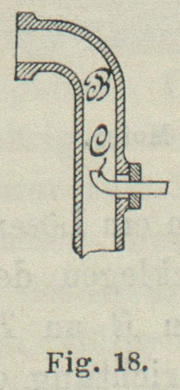 schematisch dargestellten Druckapparat (D. R. G. M. Nr. 27525) bewirkt. A ist das Auspuffventil des Motors, B die Auspuffleitung, C eine Düse, welche entweder, wie in Fig. 17 gezeichnet,
