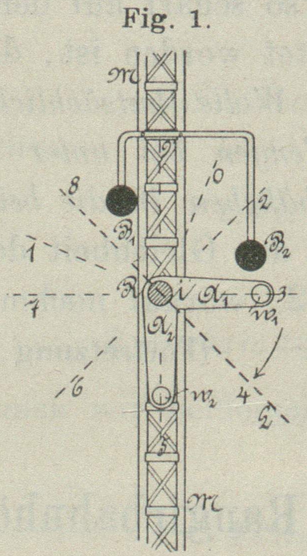an dem Signalmast M angebrachten Drehachse i sitzt. Wird nämlich der letztgenannte