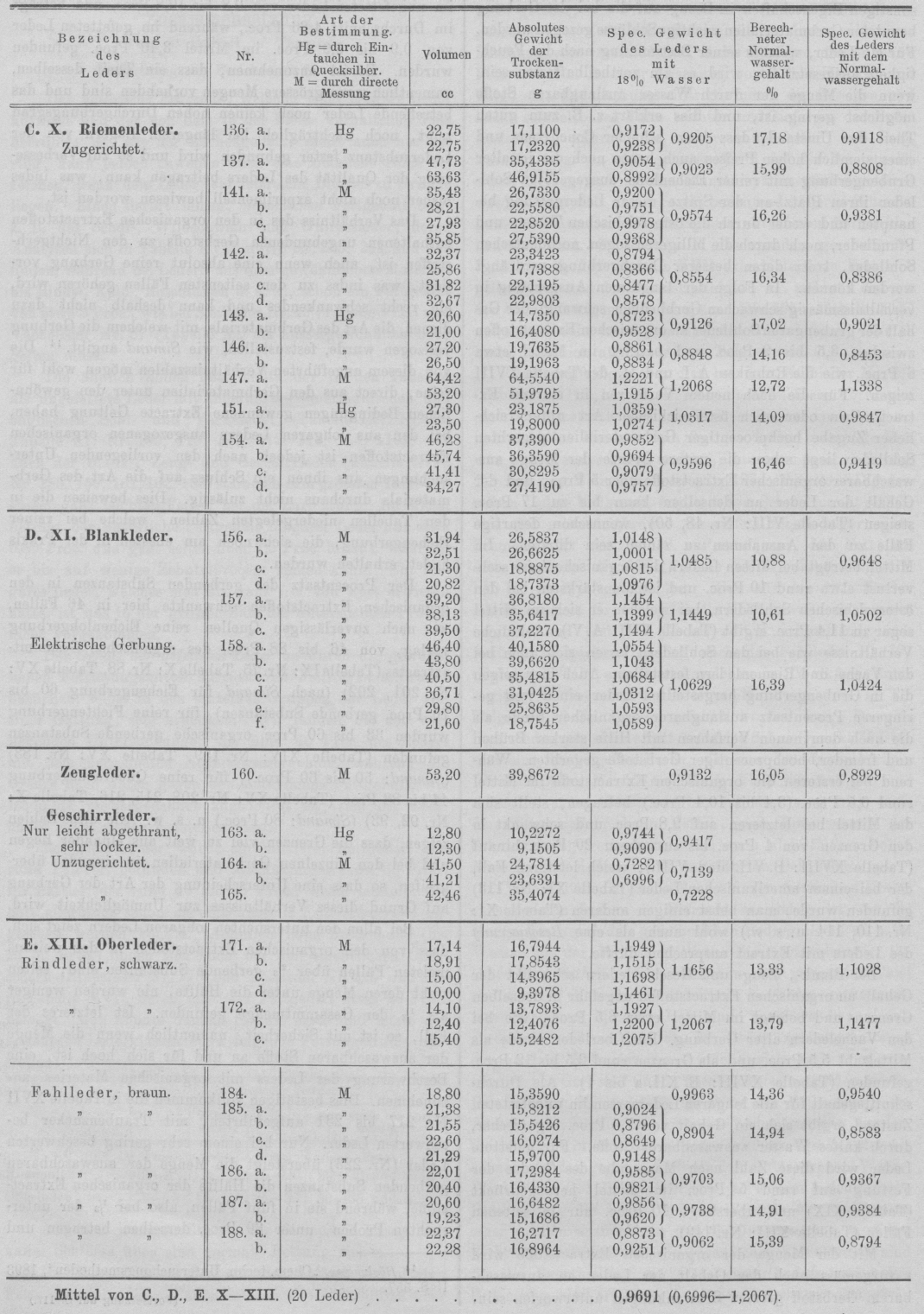 angeführten amerikanischen und englischen Sohl- und Vacheleder (Tabelle IX: Nr. 78,