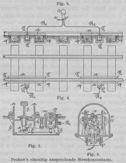 | Titel: | F. W. Prokov's einseitig ansprechende Streckencontacte. |