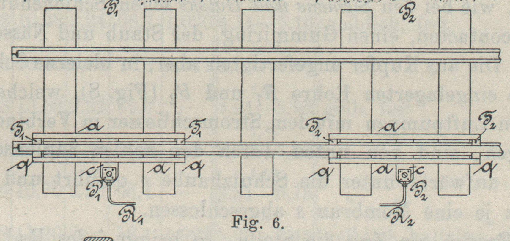Schienenstränge zwei Vorrichtungen T1 und T2 (Fig. 5 und 6) angebracht, welche im