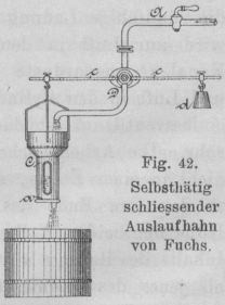 Fig. 42.Selbsthätig schliessender Auslaufhahn von Fuchs.