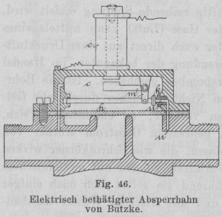 Fig. 46.Elektrisch bethätigter Absperrhahn von Butzke.