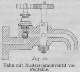 Fig. 49.Hahn mit Niederschraubventil von Fontaine.