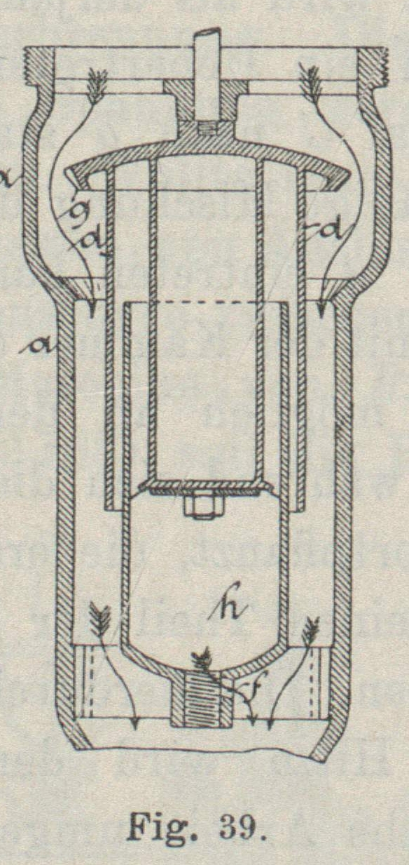gedrückt wird und dem Wasser vollen Durchgang gestattet (Fig. 39). Wird der