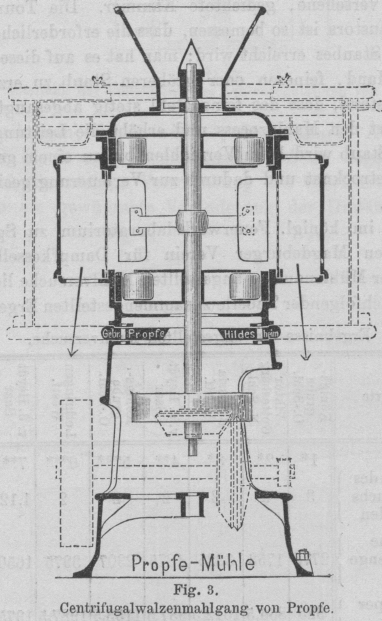 stählernen Mahlringes; sie werden durch die Fliehkraft an diese Fläche gedrückt