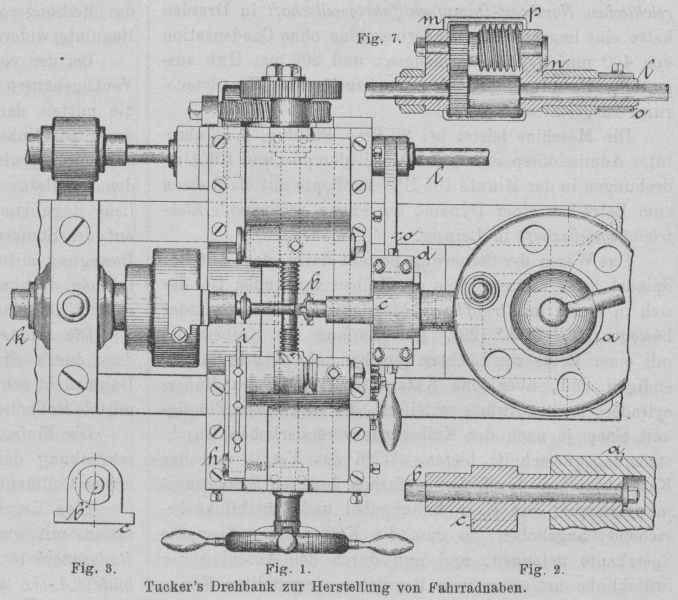 Fig. 6.Tucker's Drehbank zur Herstellung von Fahrradnaben.