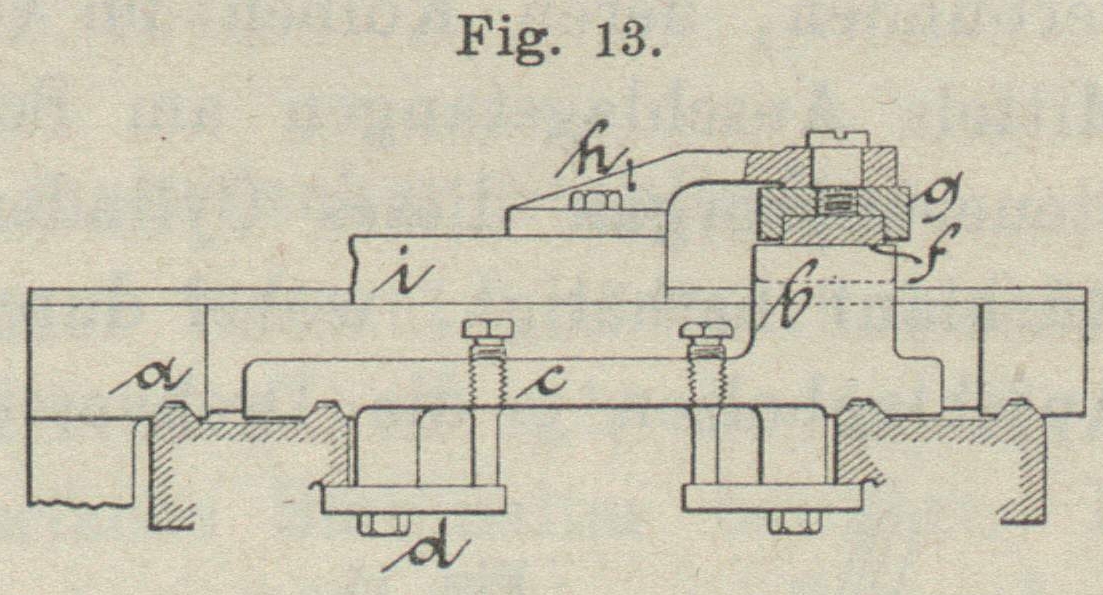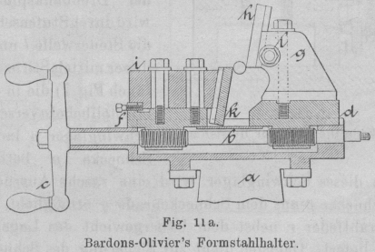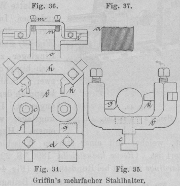 vierfache Stahlhalter bewährt. Der gusseiserne Gabelaufsatz b, welcher mit zwei Schrauben c am