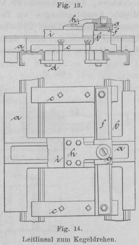 Vordreh-, hinter demselben zwei Schlichtstähle knapp an der Schulter Fig. 13. angesetzt. Das