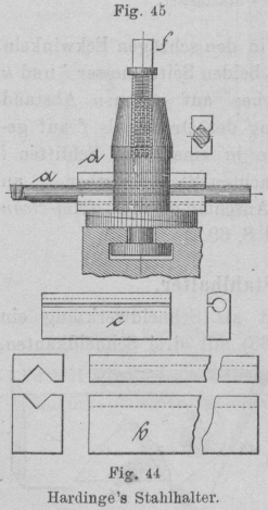 H. Hardinge wendet bei Rundstählen a (Fig. 44 und 45) die bekannten