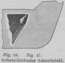 Span in die obere Stahlbrust (Fig. 47 und 48) eine Hohlkehle einschleift, durch welche die Schneide beständig eine