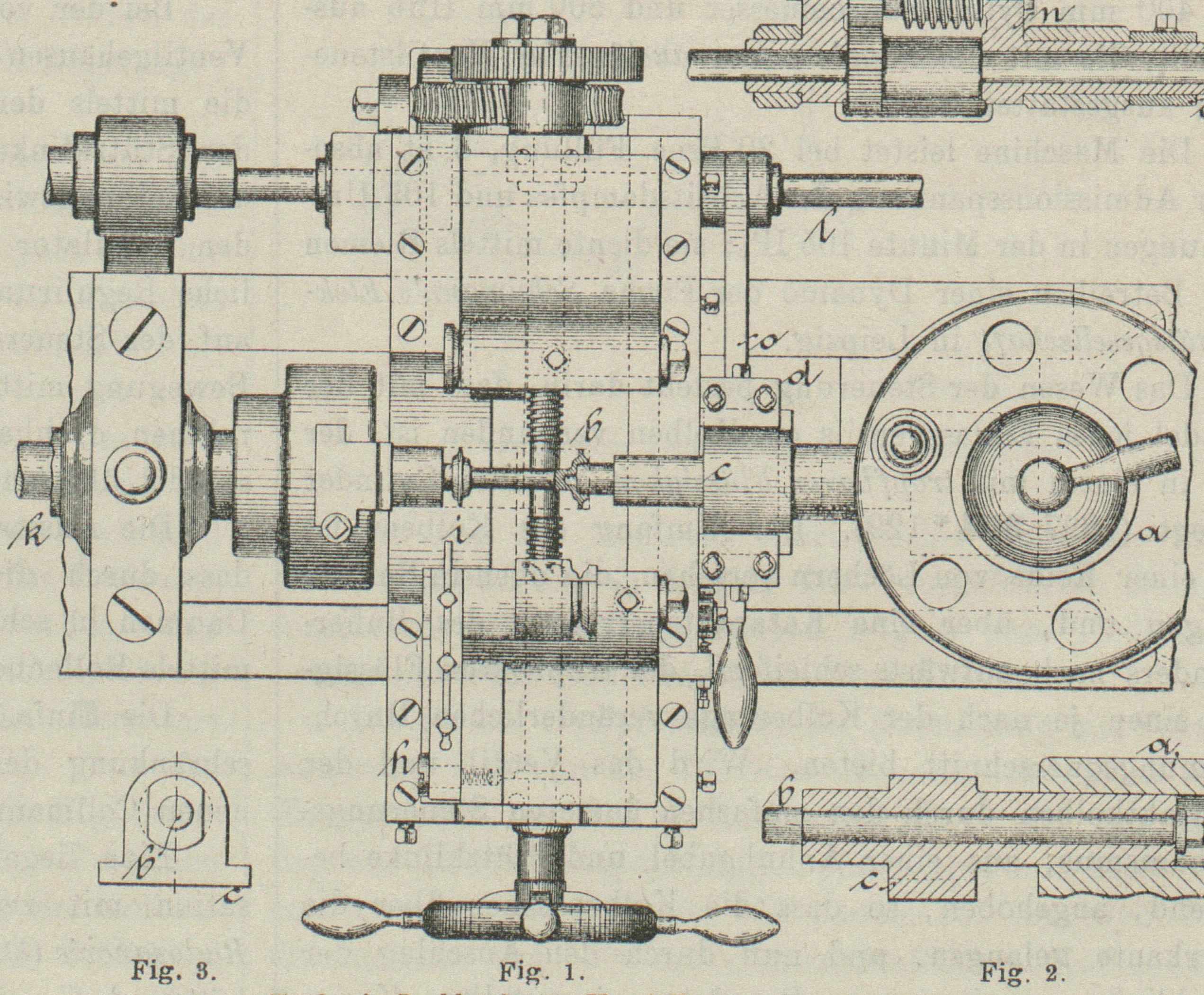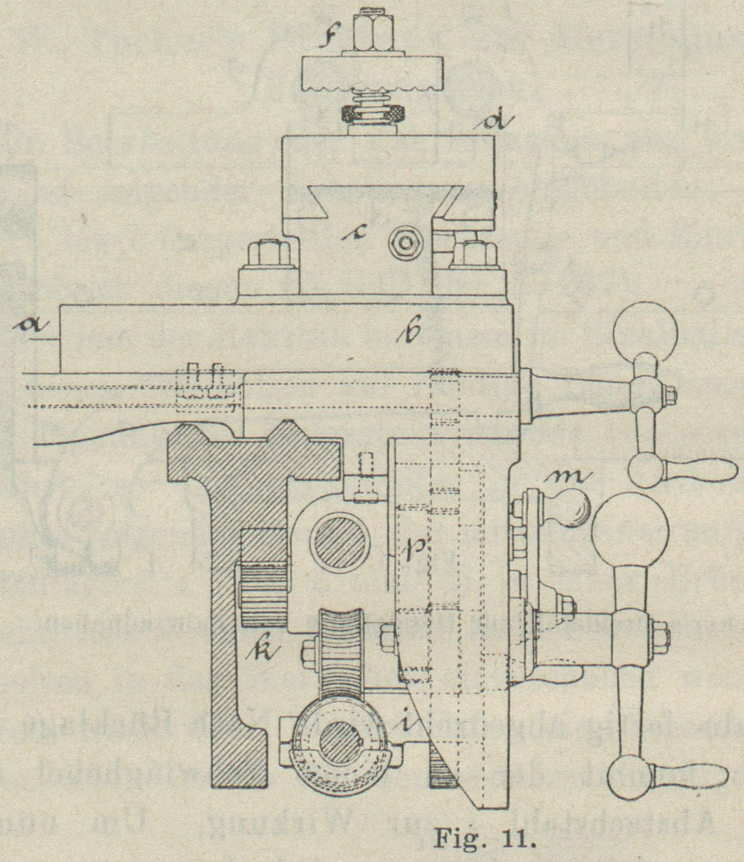 Einstellung durch Spindelräder h und i. Mittels dieser Einrichtung wird durch eine einfache