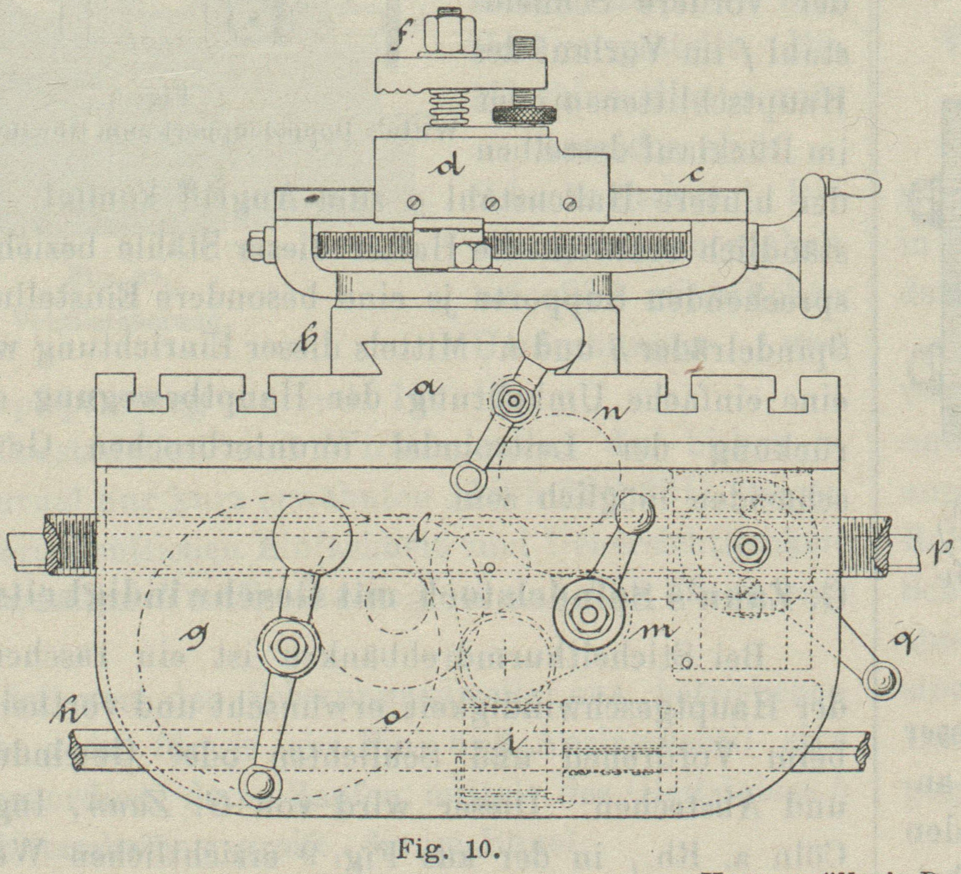 Querschlitten b durch Vermittelung eines Hebelgestänges