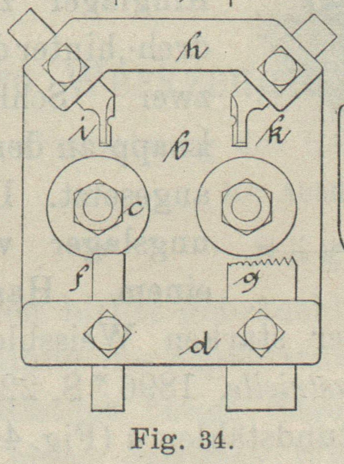 38) mit drei Schneidkanten, welches, mittels einer Mittelschraube b in einem gabelförmigen Stahlhalter geklemmt, durch