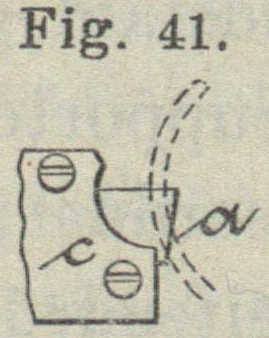 wendet einen ähnlichen Stahlhalter, aber in doppelter Anordnung (Fig. 42) an. Die beiden Abstechstähle sind in schräger
