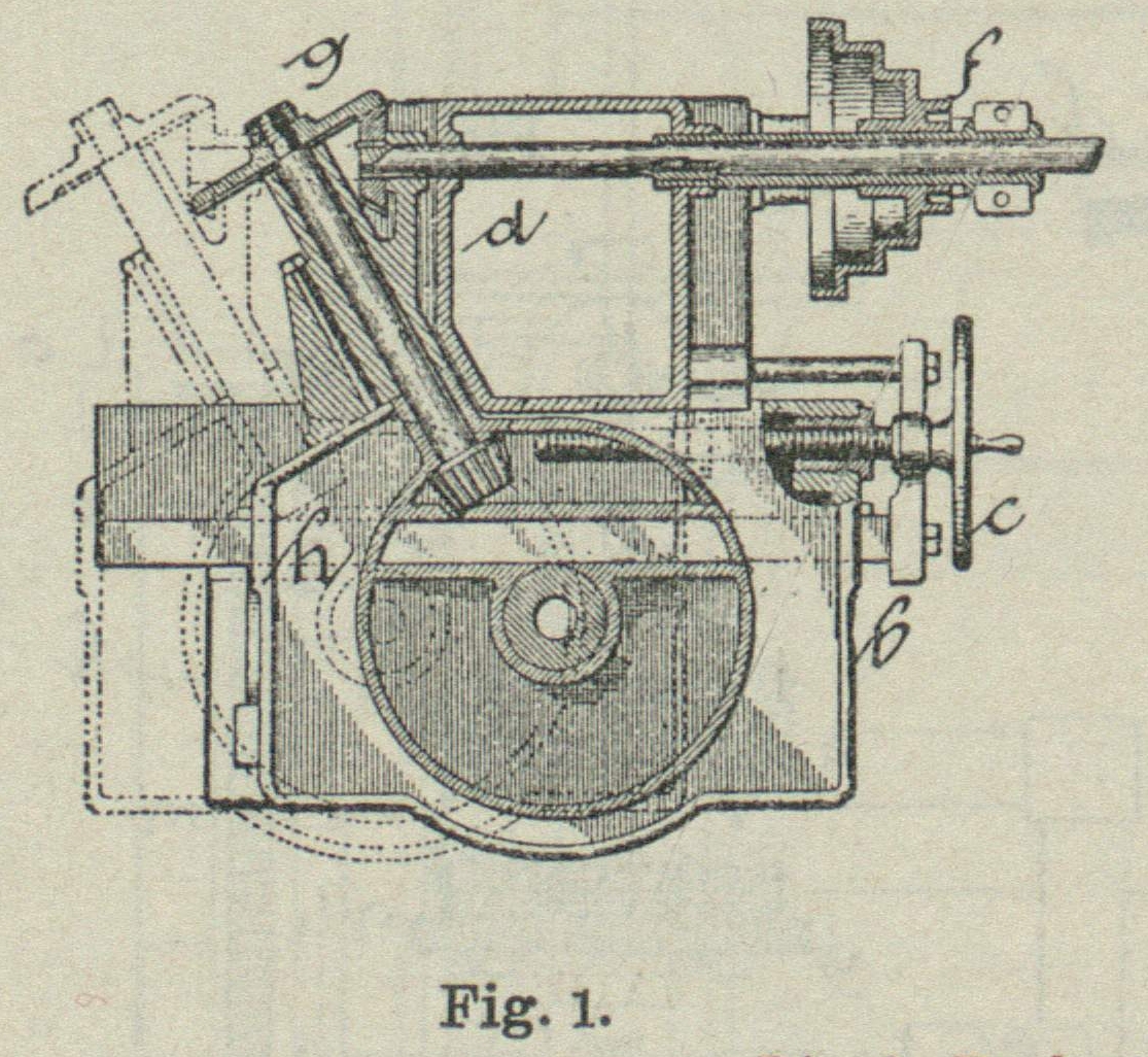 Schlitten b durch Schraubenspindel c verlegt, wobei die zur Flachbahn parallele