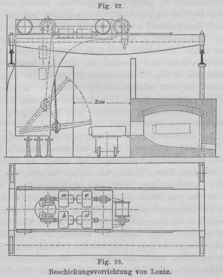 Beschickungsvorrichtung der bisher besprochenen Arten gestatten zu können. Der Lentz'sche Beschickungskrahn, wie er richtiger zu