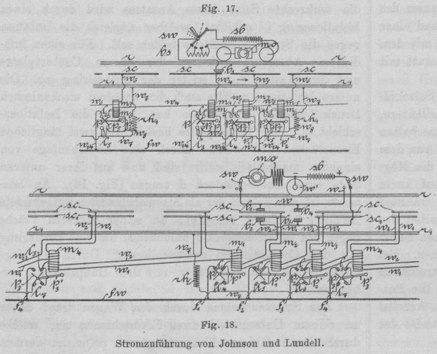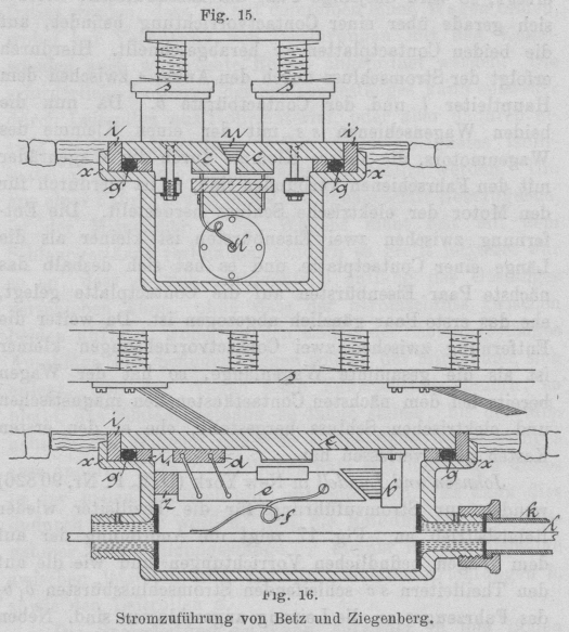 von der im Wagen befindlichen Batterie aus zwischen den Theilleiterschienen. Auf den