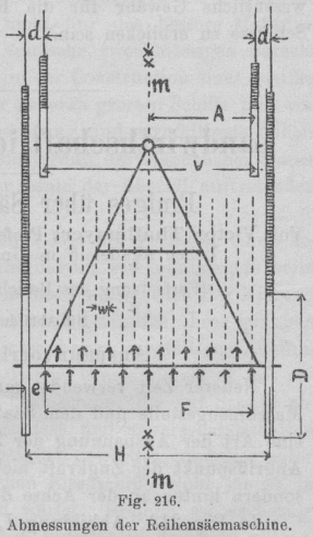 A=\frac{H}{2}-\left(e+\frac{w}{2}\right) dienen, oder wenn, wie bei Getreidesäemaschinen, sehr häufig e = 1,5 w ist, auch der
