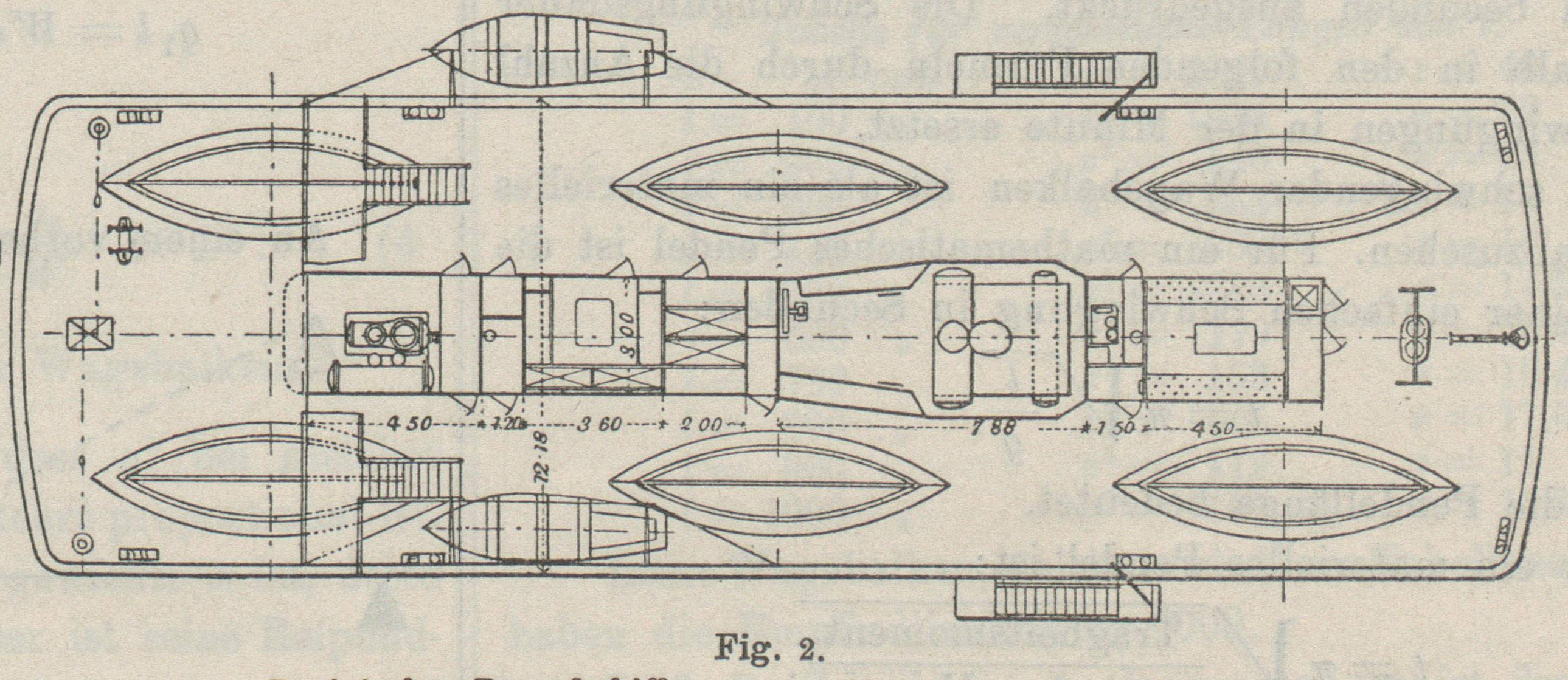 lange und 12 m breite Verdeck ruht. Dieses nimmt die Kessel- und Maschinenräume,