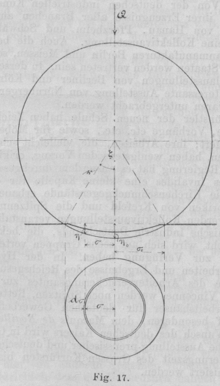 und senkrecht dazu verschiedene Krümmung hat, also die Deformation der Kugel (Fig. 17) nicht ganz genau in einem Kreise