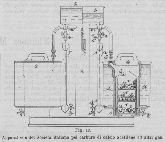 Fig. 12.Apparat von der Società italiana pel carburo di calcio acetilene
