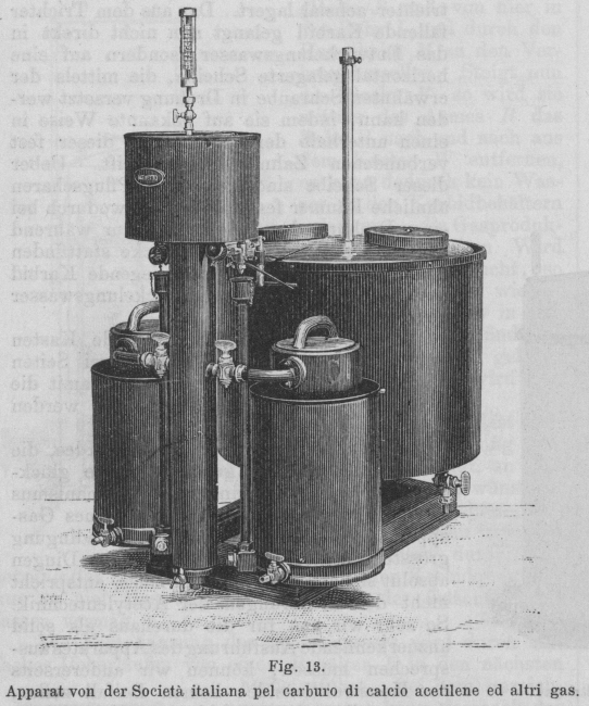 Fig. 13.Apparat von der Società italiana pel carburo di calcio acetilene