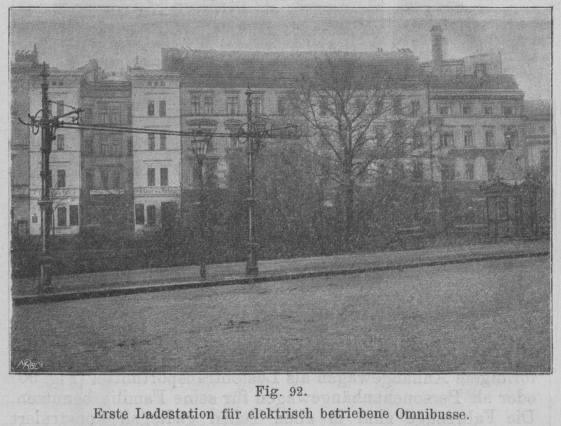 Fig. 92.Erste Ladestation für elektrisch betriebene Omnibusse.