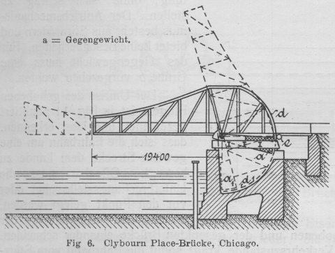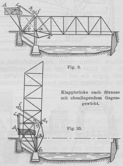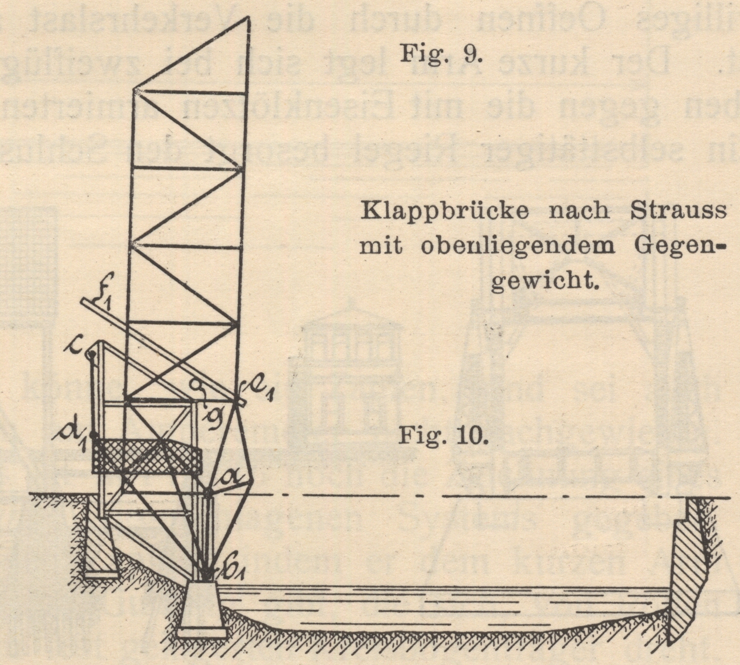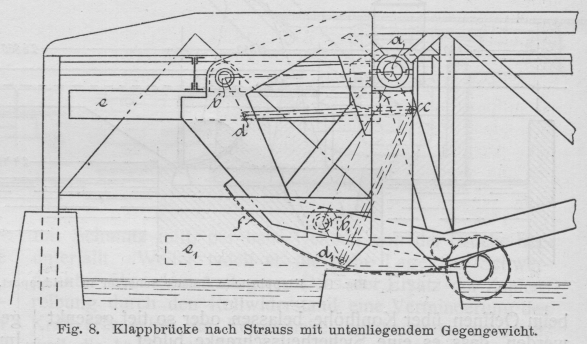 Fig. 8. Klappbrücke nach Strauss mit untenliegendem Gegengewicht.