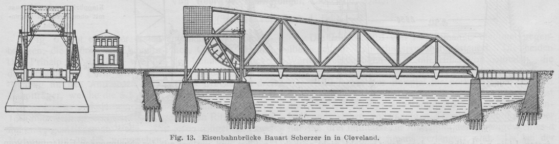 Fig. 13. Eisenbahnbrücke Bauart Scherzer m in Cleveland.