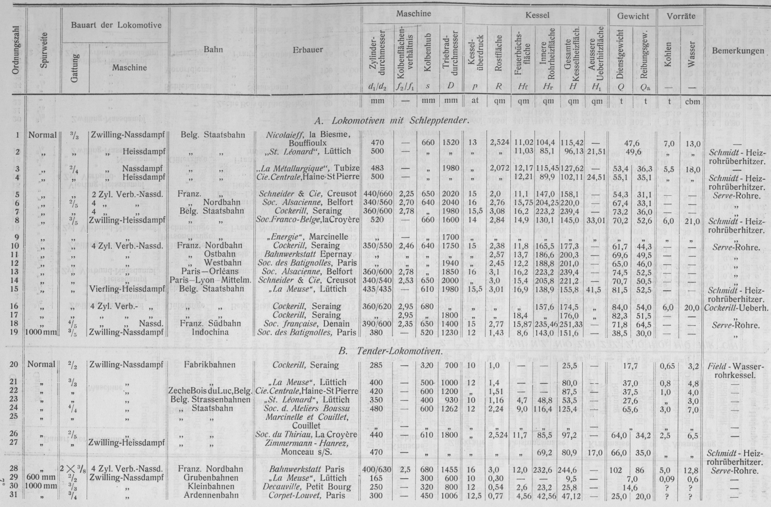 Schnellzuglokomotiven bis auf 72 hinaufgeht (No. 17, 16, belg. Staatsbahn). Sehr