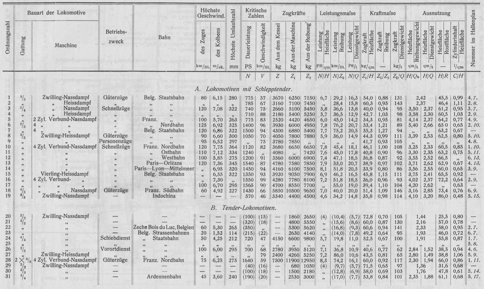 Die letzte Spalte von Tab. 3 endlich gibt die Stellung der Lokomotiven in der