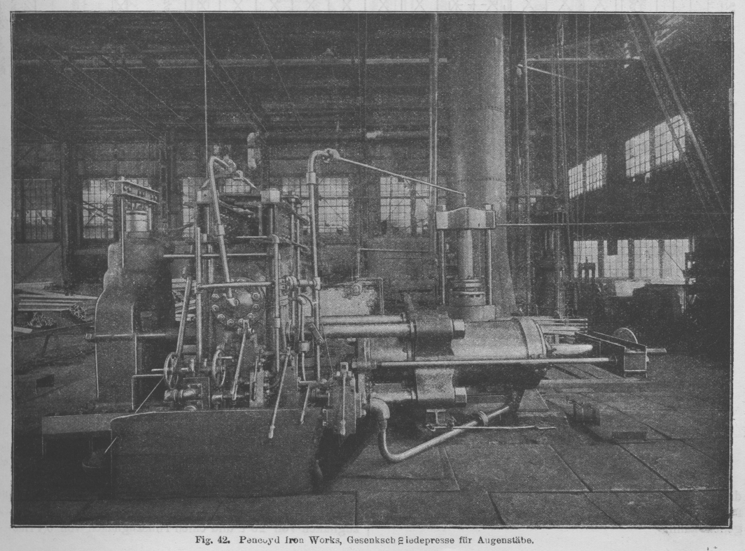 Fig. 42. Pencoyd Iron Works, Gesenkschmiedepresse für Augenstabe.