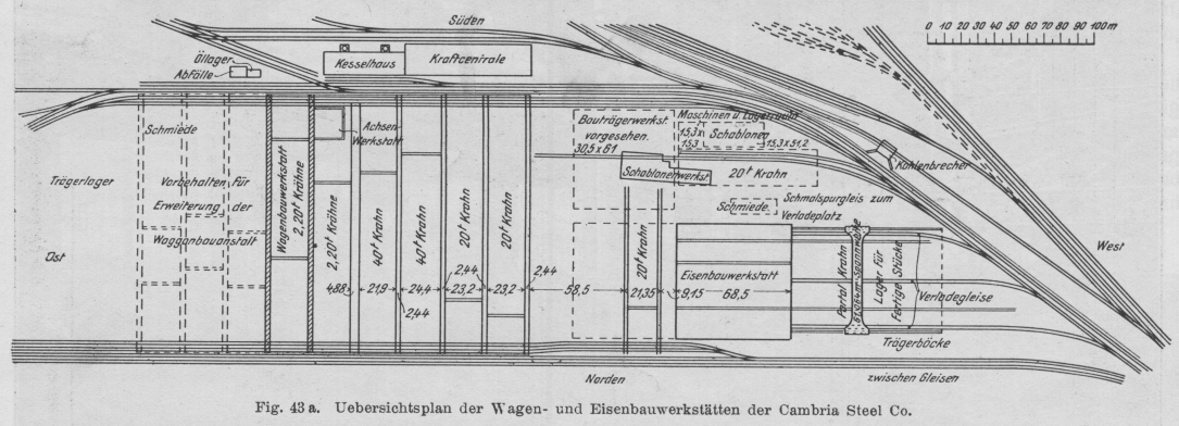 Fig. 43a. Uebersichtsplan der Wagen- und Eisenbauwerkstätten der Cambria Steel