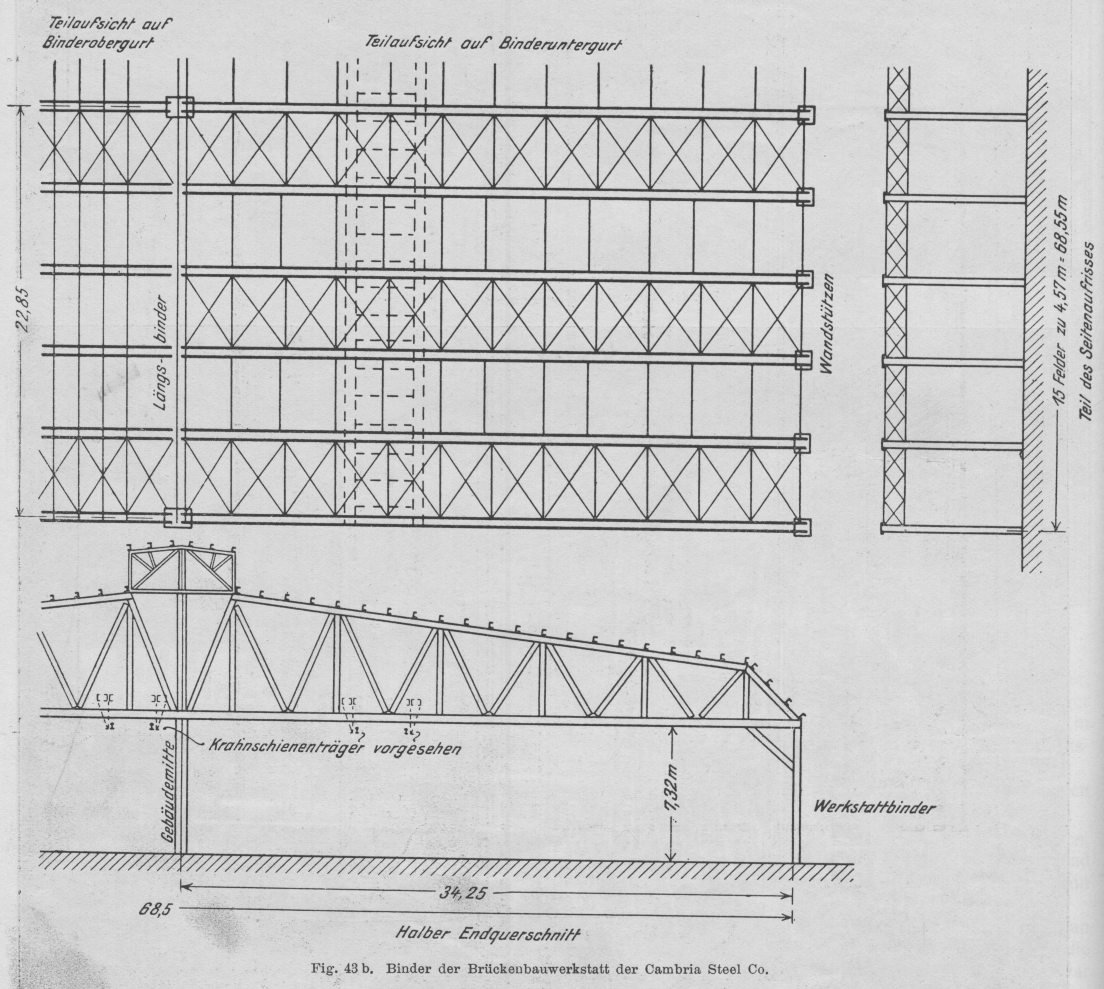 Fig. 43b. Binder der Brückenbauwerkstatt der Cambria Steel Co.