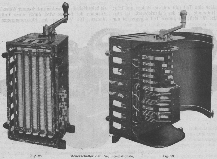 unmittelbar, sondern mittels Seilübertragung betätigt. Die Steuerschalter (Fig. 28 und