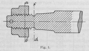 Gewindeteil etwa bei a-b (Fig. 1), auch wenn der Kerndurchmesser grösser ist als der Durchmesser im