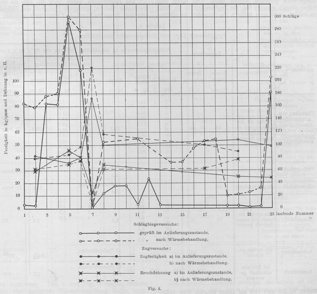 wieder Zugversuche gegenüber. Ein Teil der Proben wurde im Anlieferungszustande