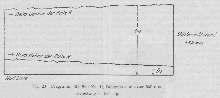 Fig. 20 Diagramm für Seil No. II, Rollendluchmesser 300 mm, Belastung = 1000