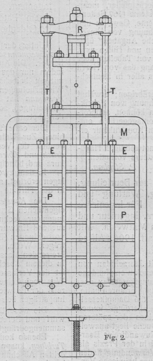 Flüssigkeit das Eigengewicht der Backe ruhte. Am Manometer wurde der Druck von 1,4