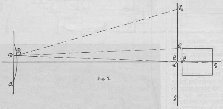 Querschnittes ein Punkt P1 des Schirmes S (Fig. 7). Der in D reflektierte Strahl