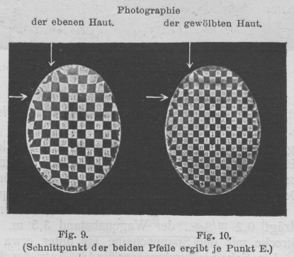 photographischen Bildes den Punkt P1 ab. Ist aber die Haut gewölbt, so bildet sich in