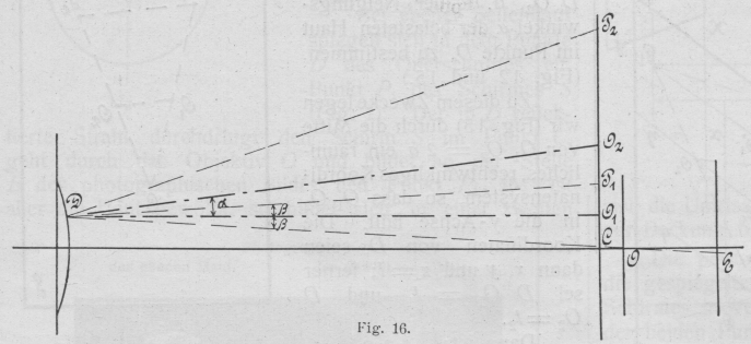 wagerechte Achse OQ des Objektes O gelegte Ebene schneidet den Schirm S in Q'C. Alsdann ist: