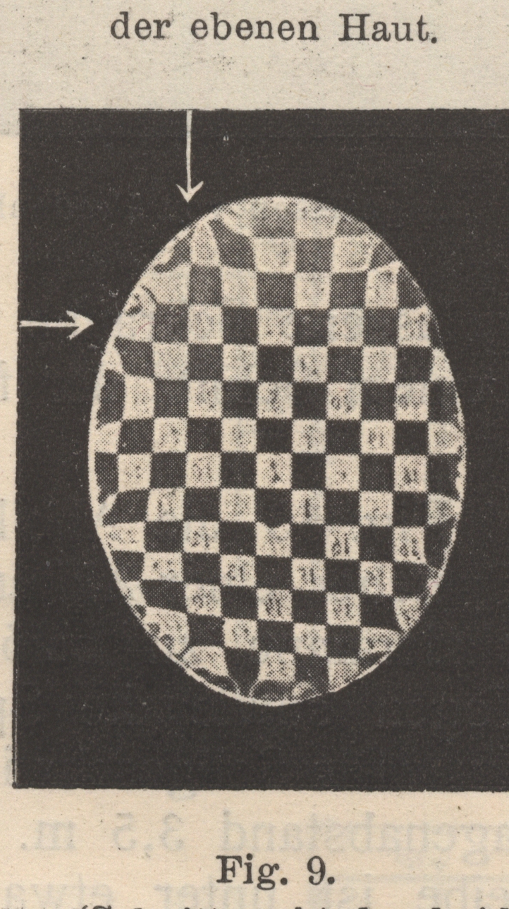ein mit schwarzen und weissen Quadraten versehener Schirm S (Fig. 7), der bei der Versuchsanordnung