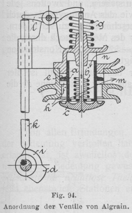 96 durch Nocken c und Gabel d mechanisch gesteuert werden. Das Auspuffventil wird