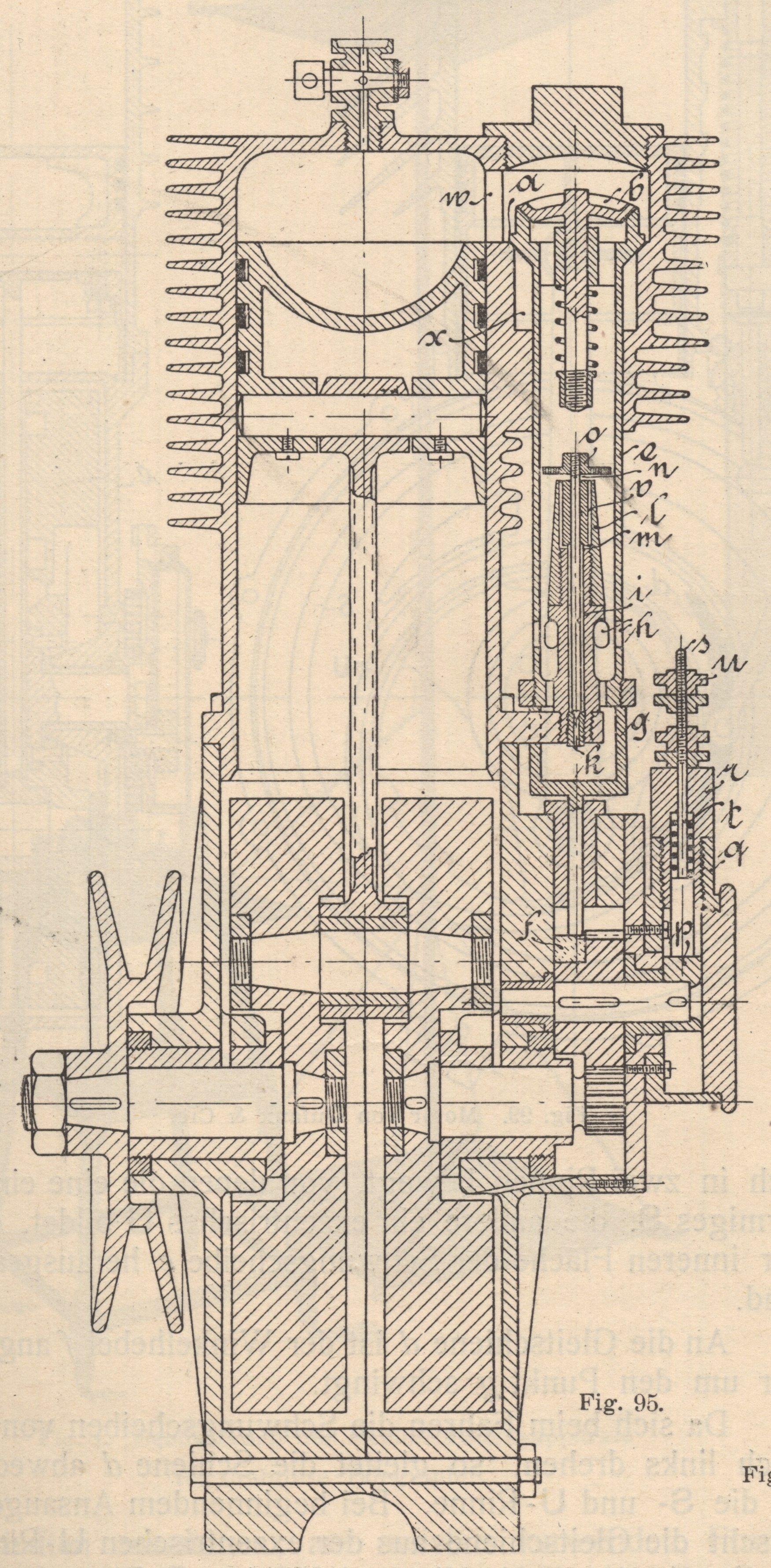 Den Zündungsunterbrecher betätigt das Exzenter p (Fig. 95),