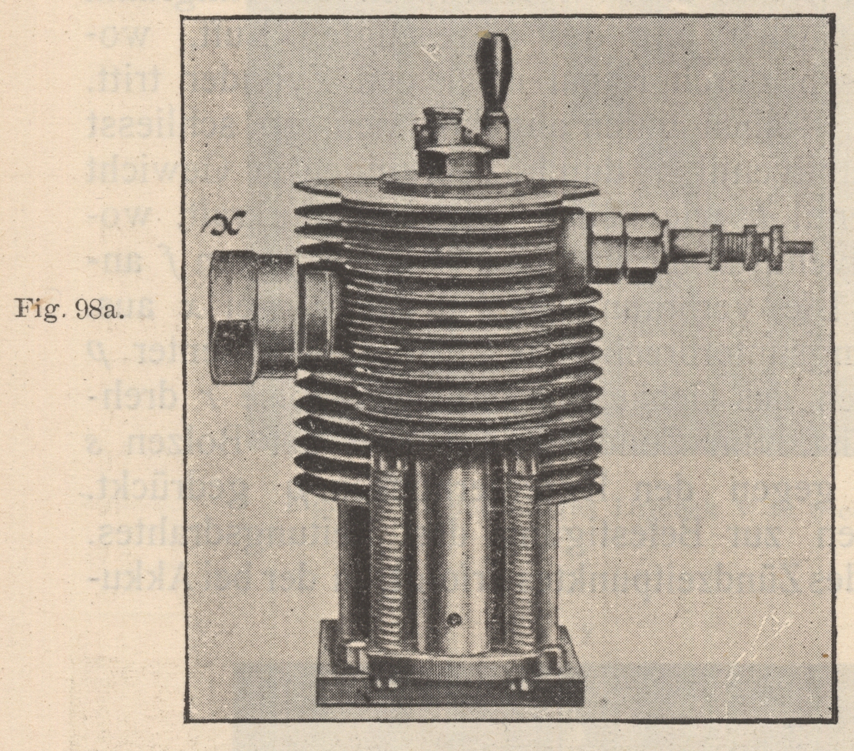 lässt deutlich die Zündvorrichtung sowie den Vergaser erkennen, während Fig. 98a