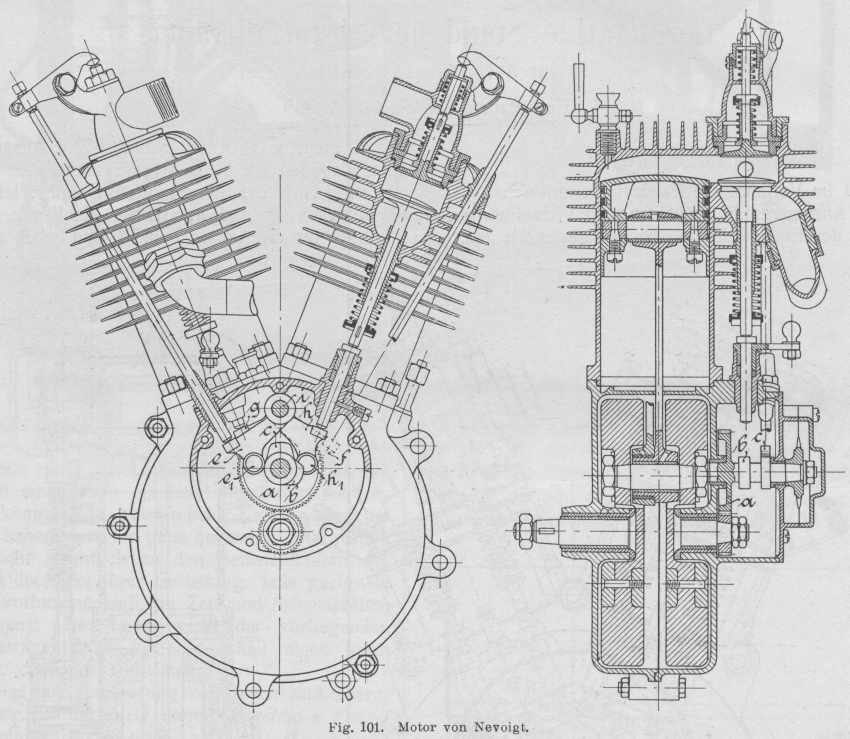 5 PS-Motors aus, bei dem die Ventile übereinander liegen. Hier kommt (Fig. 101) nur ein